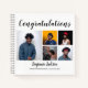 Create your own graduation guest book featuring 5 photo's of the graduate, text that reads "CONGRATULATIONS", 5 pictures, graduates name, the school or collage and the class of XXXX. The note book is easily personalized and font styles, size and colors can be changed by clicking on the customize further link after personalizing.