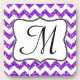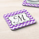 Modern Purple Glitter Chevron Zig Zag Stripe Fabric Print Pattern Monogram Initial Drink Coaster Personalised