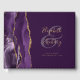 This elegant wedding guest book features a purple watercolor agate design trimmed with faux gold glitter. Easily customise the gold-coloured text on a rich plum background, with the names of the bride and groom in whimsical handwriting calligraphy over a large ampersand. Add additional text of your choice to the front and spine.