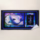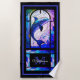 Monogrammed with Family Name, Purple and Blue, and Black Modern Beach Dolphins the ocean. Tropical Dolphin in Faux Stained Glass Design. If you're having an ocean, nautical, tropical, or luau-themed or pool party this design is perfect for the occasion.