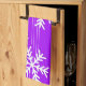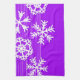 Modern purple and white Christmas snowflakes Tea Towel