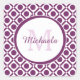 Modern Purple and White Geometric Monogrammed Name Square Sticker