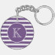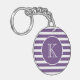 Modern Purple and White Stripes with Monogram Key Ring