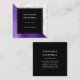 Modern, trendy design features simple white lettering in a black square, against a dramatic background of white marble and amethyst purple faux brushed metal foil. Add your contact information on the reverse in white sans serif font on a solid black background.