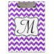 Modern Purple Glitter Chevron Zig Zag Stripe Fabric Print Pattern Monogram Initial Clip Board Personalised