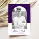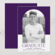Announce your graduate’s special achievement with this simple and stylish graduation announcement, featuring their photo inside a sleek arch frame. The purple and white colour block background adds a modern touch, while "Graduate" is displayed in bold purple lettering for a striking contrast. Personalise this graduation announcement by adding the graduate’s name, school, and graduation year, making it a truly unique keepsake for friends and family to cherish. Perfect for both high school and college graduates, this elegant design beautifully captures their accomplishment.