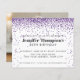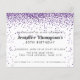 Invite family and friends to celebrate 50th Birthday with these chic trendy invitations. Design featuring classy and elegant faux glitter purple Confetti Birthday Party with your party details aligned at the centre in grey bold font over a white background.