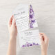 Modern Purple Floral Foliage Wedding with RSVP All In One Invitation