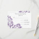 RSVP. Modern Purple Floral. A beautiful simple design for a wedding, anniversary, birthday or any other occasion. Matching Products Available - 100% Customisable. Ready to Fill in the box(es) or Click on the CUSTOMIZE button to add, move, delete or change any of the text or graphics. Made with high resolution vector and/or digital graphics for a professional print. NOTE: (THIS IS A PRINT. All zazzle product designs are "prints" unless otherwise stated under "About This Product" area) The design will be printed EXACTLY like you see it on the screen and on the product...so please make sure when you do your changes on the resizing of any of the graphics or text that it fits in the areas correctly and that your spelling and wording is how you like it to be in size, colour and font. If you have any questions about this design please contact me at siggyscott@comcast.net or visit my store link: http://www.zazzle.com/magical_weddings?rf=238713599140281212 (Copy and Paste) I'll be happy to help. Thank you for the support and stopping by my store - Magical_Weddings. © Donna Siegrist