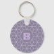 Modern Purple Geometric Cubes Pattern Monogram Key Ring