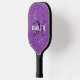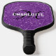 Modern purple glitter black script monogram white name women's pickle ball paddle. Personalise with your name.