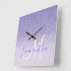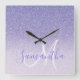 Modern Purple Glitter Sparkles Personalised Name Square Wall Clock