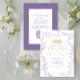 Modern Purple Gold Botanical Floral QR Quinceañera Invitation