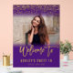 Glamourous purple and gold glitter sweet 16 welcome acrylic sign. Use the online template tools to add your own photo. THE SAMPLE PHOTO IS NOT INCLUDED. REPLACE WITH YOUR OWN PHOTO BEFORE ORDERING. Designs are flat printed illustrations/graphics - NOT ACTUAL GOLD GLITTER.
