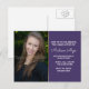 Modern purple and gold custom photo graduation party invitation postcard. Add your photo and text.