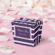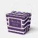 Modern custom purple wedding favour boxes featuring white stripes on a purple background. Easily personalise these purple wedding favour boxes with your wedding details. Our modern purple wedding favour boxes are perfect for your elegant purple wedding party. These personalised thank you favour boxes can be customised to other occasions, such as bridal, or baby showers.