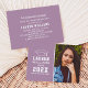 Announce your high school or college graduate in style with this graduation announcement and party invitation. Two-sided card features a senior portrait of the graduate with grad cap and simple and modern white typography design. Lavender / violet purple background can be changed to a different colour with the "Customise It" feature, then Edit / Background to select another colour.