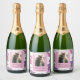 Modern Purple Pink Blossom Script Photo Wedding Sparkling Wine Label