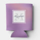 A can cooler with a modern stylish background. Pink and purple colours swirling around creating an elegant gradient effect.