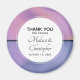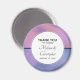 A wedding thank you magnet with a modern stylish background. Pink and purple colors swirling around creating an elegant gradient effect.