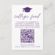 Celebrate your high school graduate’s success with this elegant college fund enclosure card featuring a purple graduation cap at the top and "College Fund" in modern purple script on a white background. Easily personalise it with the graduate’s name, school name, graduation year, and custom instructions. A convenient QR code allows friends and family to contribute effortlessly to the graduate’s college fund. This stylish and functional design is the perfect addition to graduation announcements, party invitations, or thank you cards.