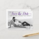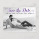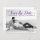 Modern purple script wedding Save the Date photo postcard. This contemporary typography Save the Date design features a black and white photo of the couple and the text "Save the Date" in a modern script font.