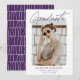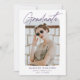 Trendy graduation announcement featuring the graduate's photo framed by a white rough edge border. "Graduate" is displayed in a purple signature script with the graduate's name, school name, and graduation year shown below. The modern graduation announcement reverses to display a unique purple and white stamped line pattern. This photo graduation announcement card is perfect for both high school and college graduations.