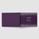 This elegant wedding guest book features top and bottom borders of faux silver glitter on a purple background. Easily customise the silver grey text with the names of the bride and groom in whimsical handwriting calligraphy over a large ampersand. Add additional text of your choice to the front and spine.