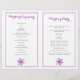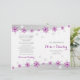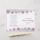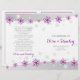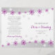 Stylish purple and white snowflakes and stars in silver grey wedding ceremony and party folded program. Beautiful purple snowflakes and grey stars on white background adorn this elegant modern and contemporary customisable template. A good choice for a December winter or Christmas wedding. Fold it in half. Choose only the value paper type for best results to fold it easily.