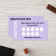 Purple loyalty punch card in a very clean design for your business in purple, white, and black. Ten visit loyalty card in purple, white, and black with your contact info on the back.