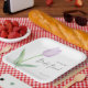 This elegant bridal brunch luncheon paper plates features a single, soft lavender purple and sage green tulip stem, presenting a simplicity that is both elegant and modern, yet perfect for a garden or casual wedding. Created by Simply Farmhouse Press.