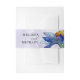 Theme Parties' modern watercolor wedding belly band design features a pretty periwinkle blue watercolor daisy set on a pastel lavender watercolor swatches background. #PurpleWildflowers #ModernWedding #Watercolor