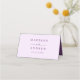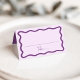 Add a stylish touch to your wedding reception or special event with these Modern Wavy Frame wedding place cards! The retro design displays "Table" in a handwritten purple script with space for you to write your guest's name and table number. A dark purple wavy border surrounds the design contrasting with a light purple background. The back of the folded place card features your names and wedding date in bold purple lettering.