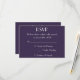 Create your own custom, personalised, elegant, modern, simple, purple and white, custom wedding RSVP invitation card. Simply enter your rsvp date, wedding date, and bride and groom's names. While you personalise, you'll be able to see a preview, throughout. An elegant wedding RSVP for all your friends and family.