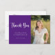 A modern classic graduation thank you card with a simple purple and white theme. The photo is for placement purposes only and can be replaced with any photo of your choice. Customise text on the front and back of the card to create your perfect graduation thank you. #graduationthankyou #classof #highschoolgraduation