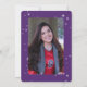 This design features a modern dark purple background accented with a white sparkle overlay. The back features the graduate's favourite photo. Created by Simply Farmhouse Press.