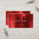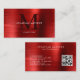 Modern QR Code Brushed Metallic Red Monogram Business Card