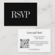 Stylish 3.5 x 2.5 Wedding RSVP enclosure card with QR code directing to wedding website. Available with our Modern Chic Black & White Wedding Invitation.
