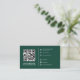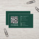 Modern and simple QR Code custom logo and custom social media icons business card template. Template in a modern minimalist style on a beautiful emerald green colour background with simple text font style in white colour with your Website QR Code. The versatile template can easily be updated with your company logo, name, title, address, phone, email and social media usernames (for Instagram and Facebook). The icons can easily be replaced with the one you want or an added extra to make a truly bespoke professional design for your own business! When you personalise the template choose from the template layer the icons (twitter, pinterest, tiktok, snapchat, linkedin, youtube,) you want and make visible on your business card by clicking on them and remove or make invisible the icons you don't need on your business card.