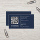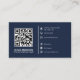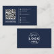 Modern QR Code Custom Logo Social Media Navy Blue Business Card