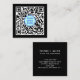 Modern professional black square business card that combines a scannable QR code linked to your website with your branded logo embedded in the middle. Input your website URL address to automatically generate the QR code and upload your logo (with a solid, nontransparent background). The logo template is sized appropriately to keep the QR code scannable (you should verify by scanning your personalisation with your phone before ordering). On the back, add your name, title and contact information (such as email, telephone numbers, company name and mailing address) in simple white typography.
