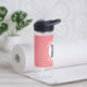 Modern QR Code, personalised Text, Pink & White Water Bottle