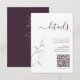 Introducing the Modern Plum Purple Script Botanical Wedding Details Enclosure Card! This beautiful card is perfect for adding a personal touch to your wedding invitation suite. Designed to coordinate with wedding invitation in the same theme, the modern floral line art and elegant calligraphy make this card a stunning way to include all of the important information for your guests via QR Code link to your wedding website. Whether you're looking for a way to add a personal touch to your wedding details or just want a beautiful and modern way to include all the important information, the Modern Plum Purple Script Botanical Wedding Details Enclosure Card is perfect for you! Contact designer for matching products. View collection here: https://www.zazzle.com/collections/modern_plum_purple_script_botanical_wedding-119301430653753937 Copyright Elegant Invites, all rights reserved.
