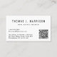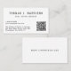 Professional elegant and modern business card that features your name, title and contact information (such as email, telephone numbers, company name and mailing address) in clean, simple typography. Input your website's URL address to create a scannable QR code. On the back, customise additional text or leave blank.