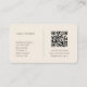 Modern and chic QR code & social media business contact card. This card features a combination of contemporary fonts, a QR code, website, contact details and social media link. The tri-colour backgrounds include lilac, light cream and pastel green.