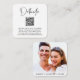Modern wedding details square enclosure card with "Details" in a chic contemporary script. Input your wedding website address to create a QR code that your guests can scan for all of the details such as directions and accommodations and to RSVP online. The back features your photo overlayed with your names and wedding date joined together by a heart.