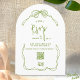 Personalise this cute modern and quirky olive green and white hand drawn style arch shape all-in-one formal wedding invitation, featuring hand written script typography details with whimsical coquette aesthetic green bow ribbon frame and floral vintage heart cake details! RSVP on wedding website or scan your QR code information is on the back side for a simple design! Easily upload your wedding QR code and edit this invitation template with your wedding details to make it yours! Scroll below to see the matching wedding stationery collection. Custom design requests and template questions are always welcome - click the "message" button or email direct at: contact@figandlilyco.com ♥ Design lovingly created by Fig and Lily Studios - sending blessings and thanks!