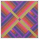 This brilliantly coloured modern geometric fabric design is decorated with a contemporary 3D abstract striped pattern in a spectrum of orange, purple, yellow, red, green, violet and black which resembles a beautiful rainbow.