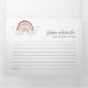 Create your cute baby invitations with this pretty and adorable rainbow boho watercolor invitation design in tan, yellow, and blue, featuring stars and clouds. The reverse side features a watercolor boho tan stripes pattern on white background.