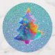 Modern Rainbow Christmas Tree Custom Monogram Blue Confetti